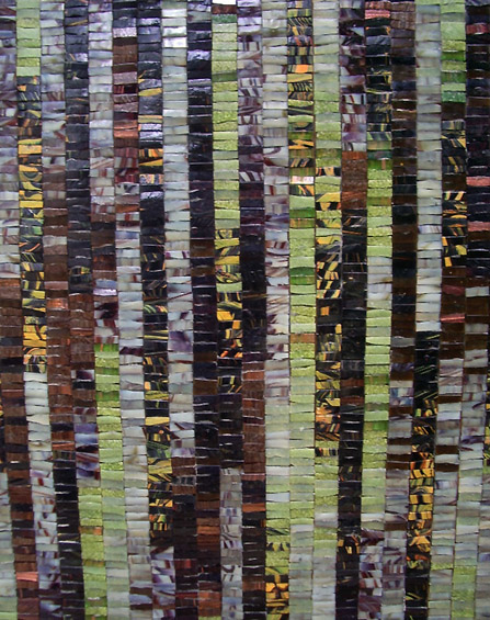 These stripes were made to be a table top on a frame. But once finished, it was stunning as a wall piece and stayed there ever since. The beautiful wrought iron leg frame is still available.