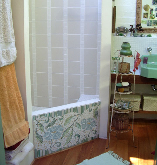 Every bathtub has a "skirt" which can be decorated with a mosaic easily giving some personalized individuality to the whole bathroom.
