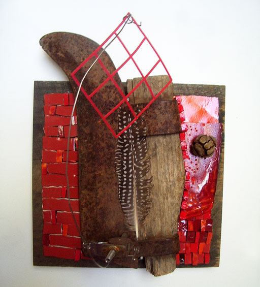 On a 20cm x 20 cm square of recycled timber, this is a firescape to put on