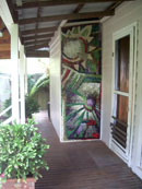 garden retreat by the forest, close to the sea. Where you will be able to enjoy a large commissioned Zebra Mosaic next to the entrance door.